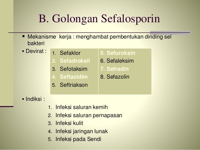 Antibiotik Golongan Sefalosporin Jenis Antibiotik Sumber : bidhuan.id